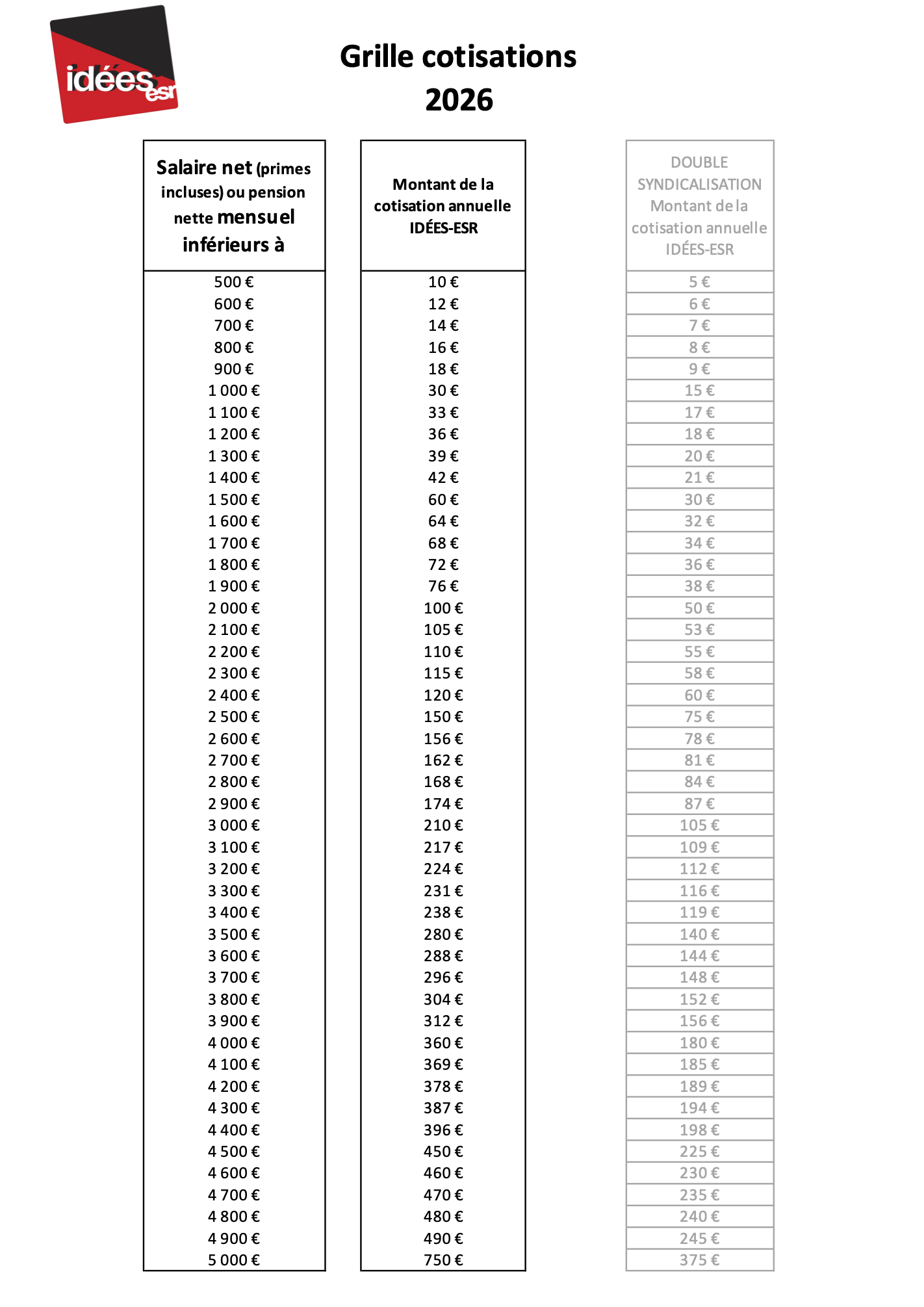 Pour adhérer au syndicat IDÉES-ESR, merci de remplir le formulaire (privilégier l’adhésion en ligne ou télécharger le pdf à nous renvoyer à treso@idees-esr.fr ou par courrier)